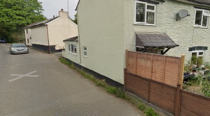 Keep left towards the village, then take the first left signposted for Brent Mill Business Park. At the T junction you will see the bridge over the river on your right, and the green cottages in front of you. Turn left, then immediately right behind the green cottages into the driveway.